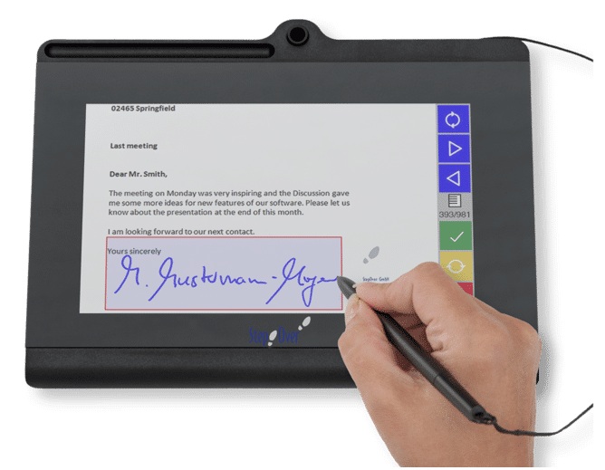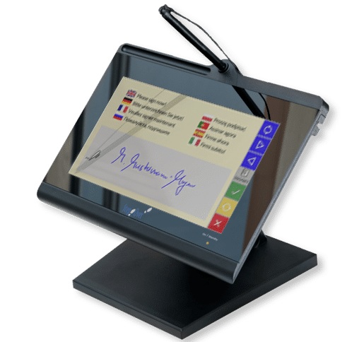 - Màn hình cảm ứng hiển thị chữ ký theo thời gian thực và có thể dùng để hiển thị văn bản, tài liệu và các nút ảo.