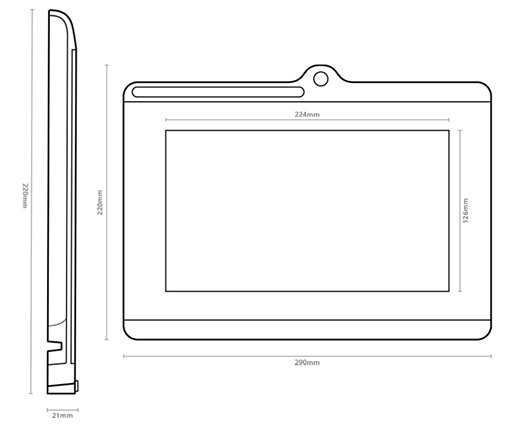 - Độ bền tối đa (Maximum durability): Thiết kế thanh lịch và chắc chắn với vỏ polycarbonate ABS dày 3 mm và bề mặt kính cường lực lớn tại khu vực viết, giúp bảng ký vừa chống mài mòn cao vừa đẹp mắt, phù hợp cho sử dụng cố định tại quầy/bàn làm việc.