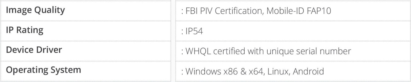Đầu đọc vân tay Mantra MFS500 được thiết kế chuyên cho các nhu cầu xác thực sinh trắc học vân tay chất lượng cao, bảo mật và an toàn dữ liệu theo tiêu chuẩn quốc tế. MFS500 sử dụng công nghệ mắt đọc chống trày xước có hiệu quả vượt trội cho các vân tay chất lượng kém . MFS500 là thiết bị sinh trắc học đạt chứng chỉ FAP10 chứng nhận cho các thiết bị xác thực, định danh vân tay và xử lý dữ liệu sinh trắc học đạt mức độ an toàn cao, hiệu suất tốt. Tại Việt nam, Mantra MFS500 được sử dụng rộng rãi cho đề án Bệnh án điện tử (EMR), các bệnh viện và cơ sở y tế uy tín trong nước tin dùng trong thời gian qua.