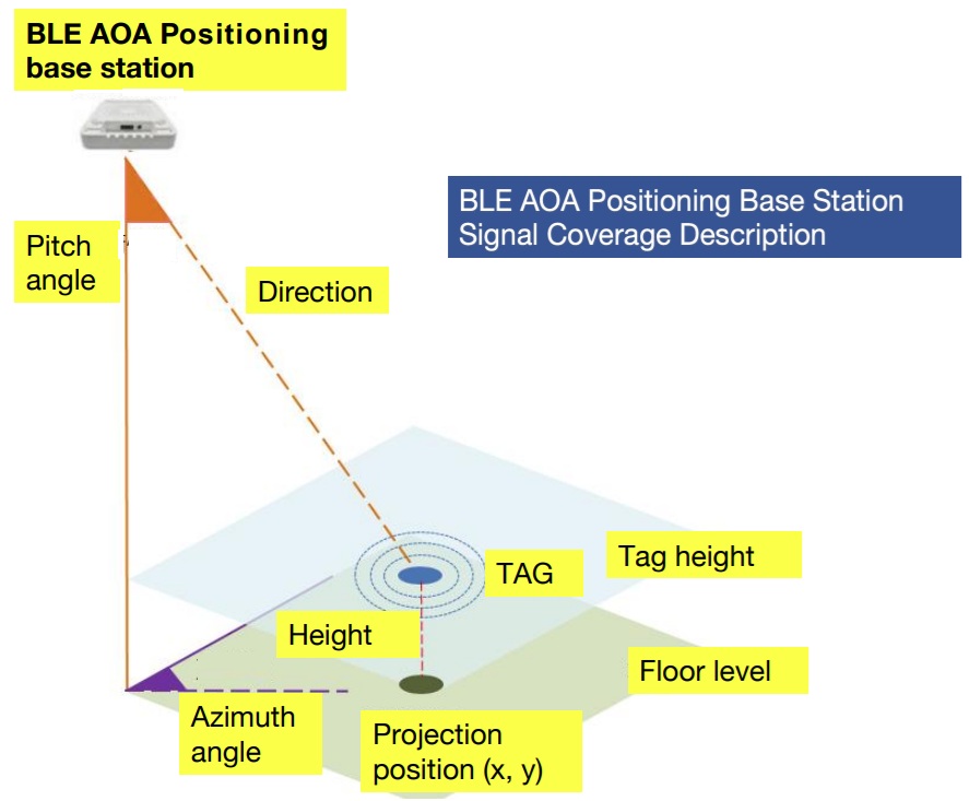 Với công nghệ định vị BLE AOA, một trạm gốc duy nhất có thể đạt được độ chính xác dưới 1 mét, và khi kết hợp nhiều trạm gốc, hệ thống có thể thực hiện định vị hợp nhất (fusion positioning). Chiều cao lắp đặt của trạm gốc AOA ảnh hưởng đến phạm vi phủ sóng không dây của trạm — trạm càng cao, vùng phủ sóng càng lớn. Hiện có hai loại trạm gốc, hỗ trợ độ cao lắp đặt tối đa lần lượt là 8 mét và 30 mét, có thể lựa chọn tùy theo bối cảnh sử dụng thực tế.